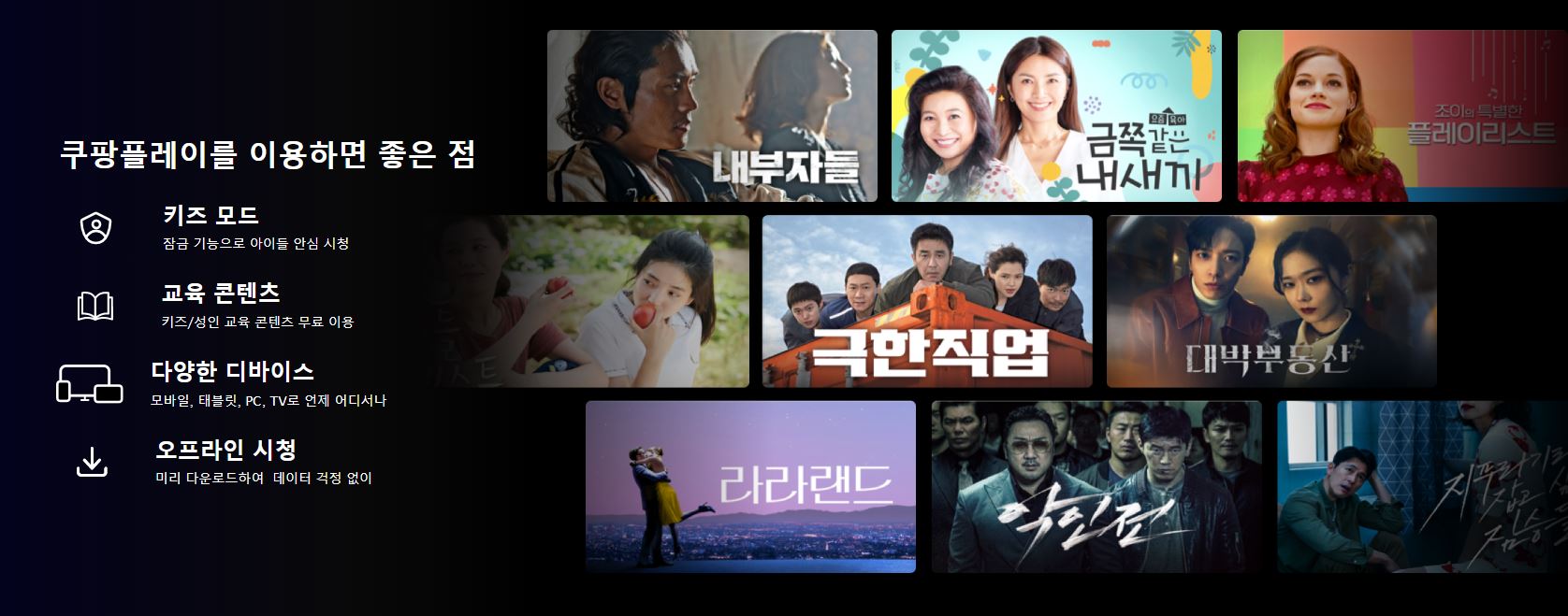 쿠팡플레이는 쿠팡에서 제공하는 OTT(Over-The-Top) 서비스 즉, 인터넷으로 미디어 컨텐츠를 제공하는 서비스 인데요. 쿠팡와우 멤버십 회원이라면 무료로 이용이 가능합니다.