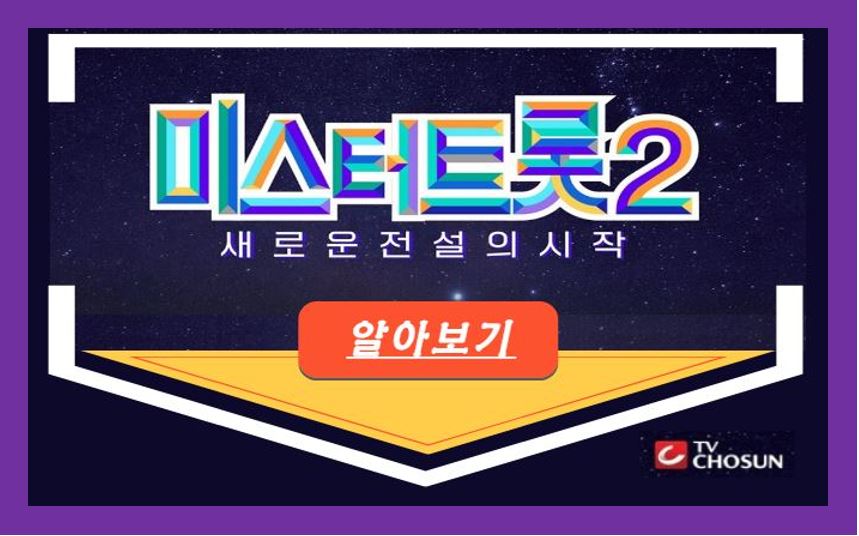 | 미스터트롯2 새로운 전설의 시작 재방송 공식영상 보러가기 (0) | 2023.01.12 |