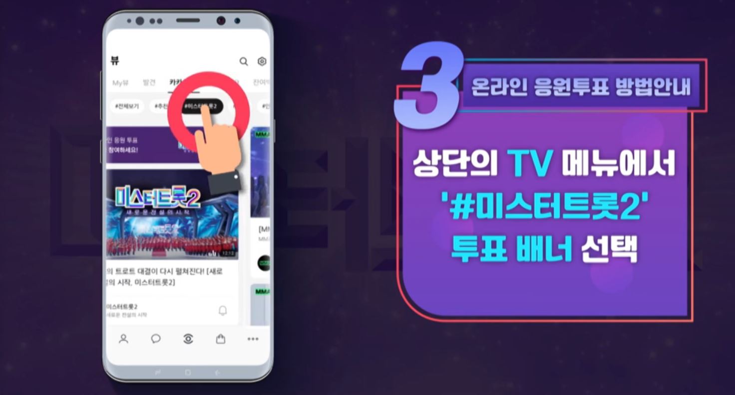 카카오TV 메뉴에서 '#미스터트롯2' 투표 배너를 선택해 주세요.