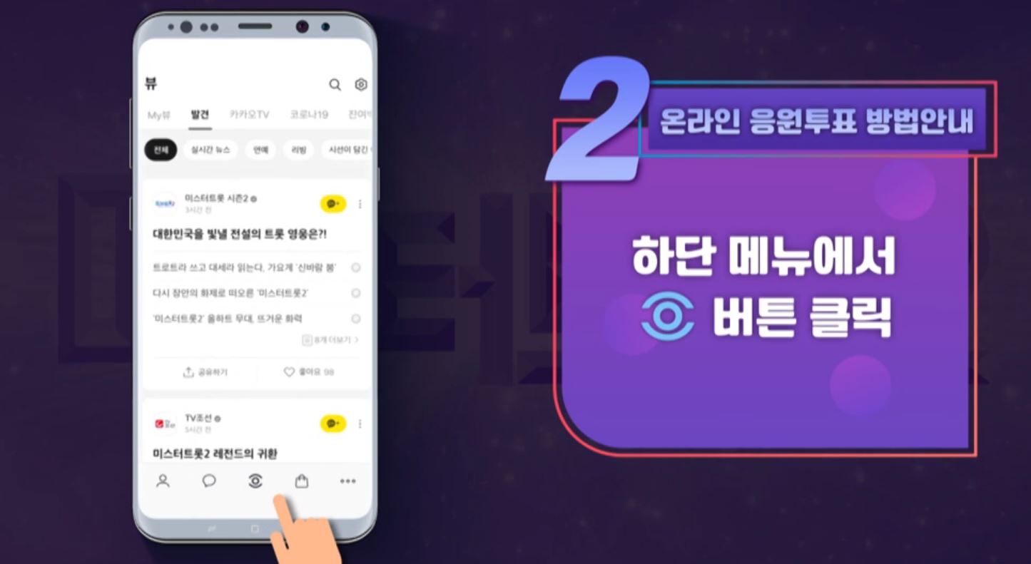 카카오TV 메뉴에서 '#미스터트롯2' 투표 배너를 선택해 주세요.