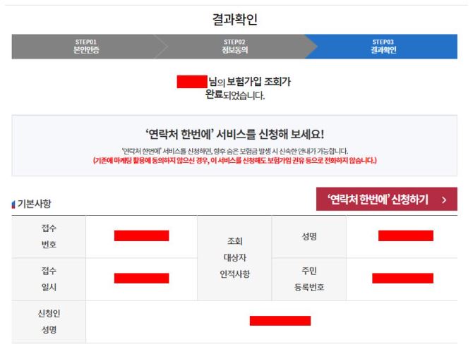 다음으로 내보험찾아줌의 숨은 보험금 조회 결과확인을 해주시면 되겠습니다.
