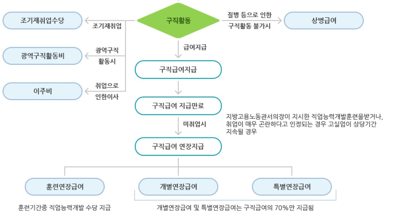 또한, 실업급여 수급기간 본의 아니게 재취업 활동이 중단된 경우 '연장급여' 또는 '상병급여' 신청으로 실업급여을 대체하여 지원 받을 수 있으니 아래 참고 하시기 바랍니다.