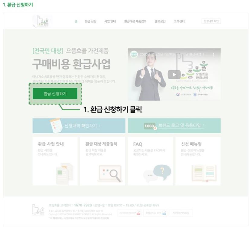 포털사이트에서 '으뜸효율가전 환급' 을 입력하여 으뜸효율 가전제품 구매비용 환급사업 공식 홈페이지로 이동해 주세요.