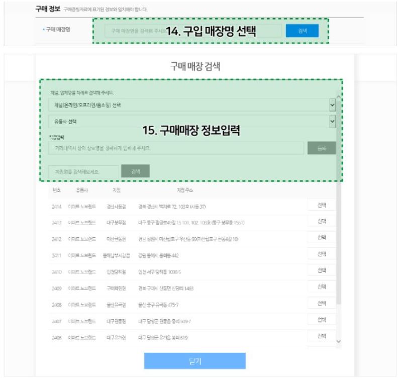 제품을 구매한 매장, 구매한 금액, 그리고 구매일자 등을 기입하시면 됩니다.