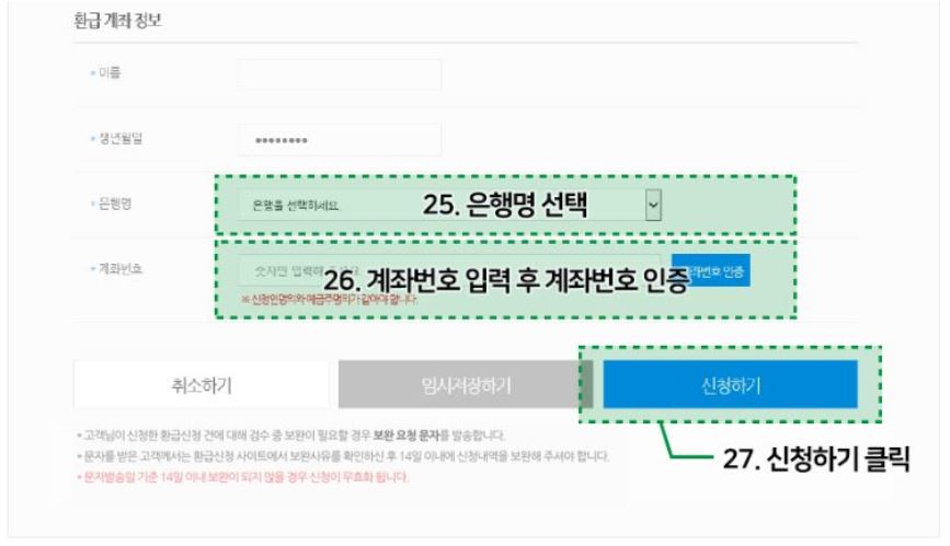 마지막으로 환급승인이 되면 환급금을 받으실 본인 계좌정보를 입력하시면 되겠습니다.