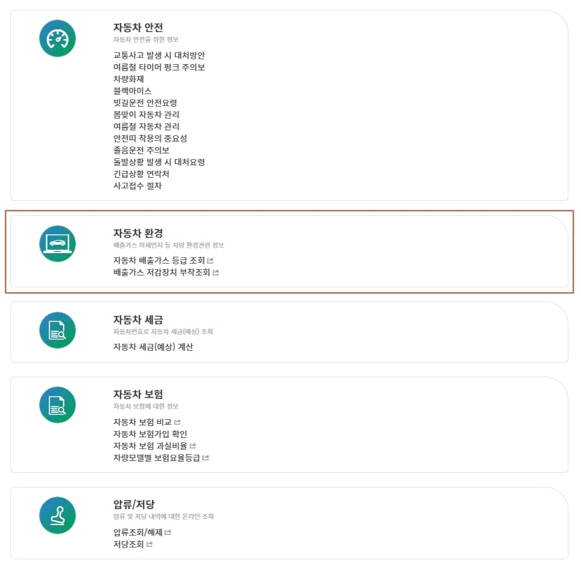 자동차 365 사이트 접속을 하시면 아래와 같은 화면을 확인할 수 있는데요. 자동차 생애주기별 서비스 항목 가운데 '운행'을 선택하고 다음페이지로 이동해 주시면 됩니다.