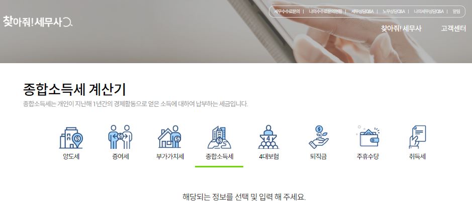 종합소득세 계산기 서비스를 제공하는 대표적인 사이트로, '찾아줘 세무사'가 있는데요.
