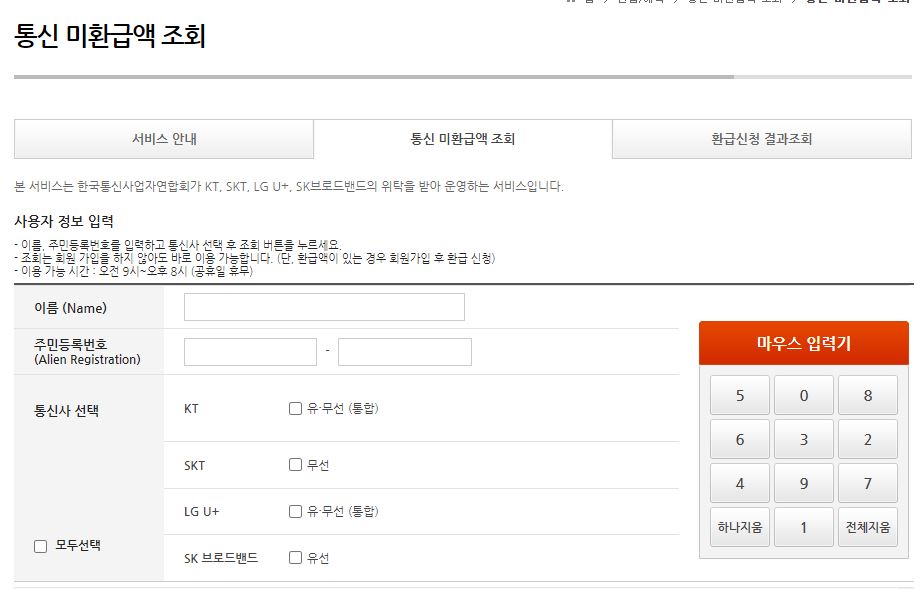 통신비 미환급금 조회 사이트를 통해 1분만에 가능합니다.
