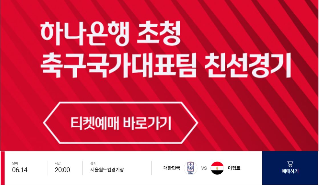 한국 이집트 평가전 예매를 원하시는 분은 아래에 접속해 주시면 됩니다.
