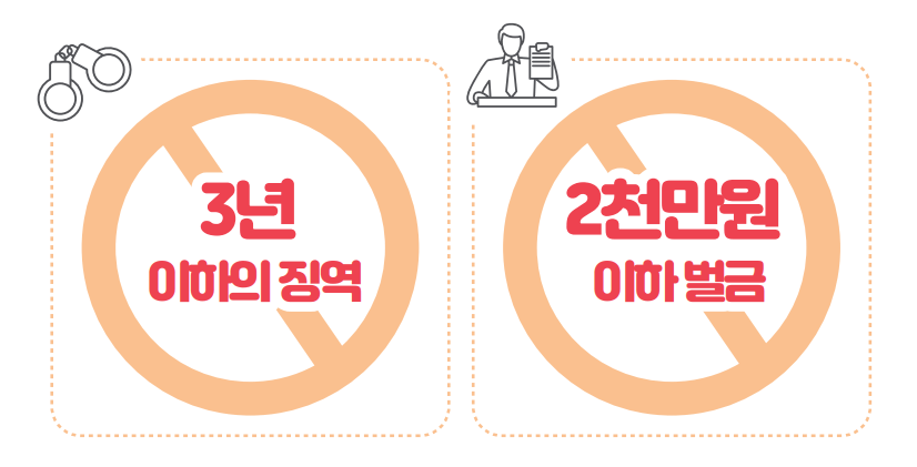 | 3년 이하의 징역 또는 2천만원 이하 벌금에 처해지거나, 이 두가지 벌칙을 같이 받을 수 있음 |